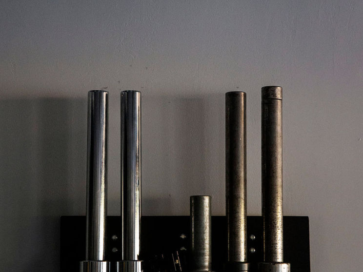 Rack, barbells, dumbbells, kettlebells